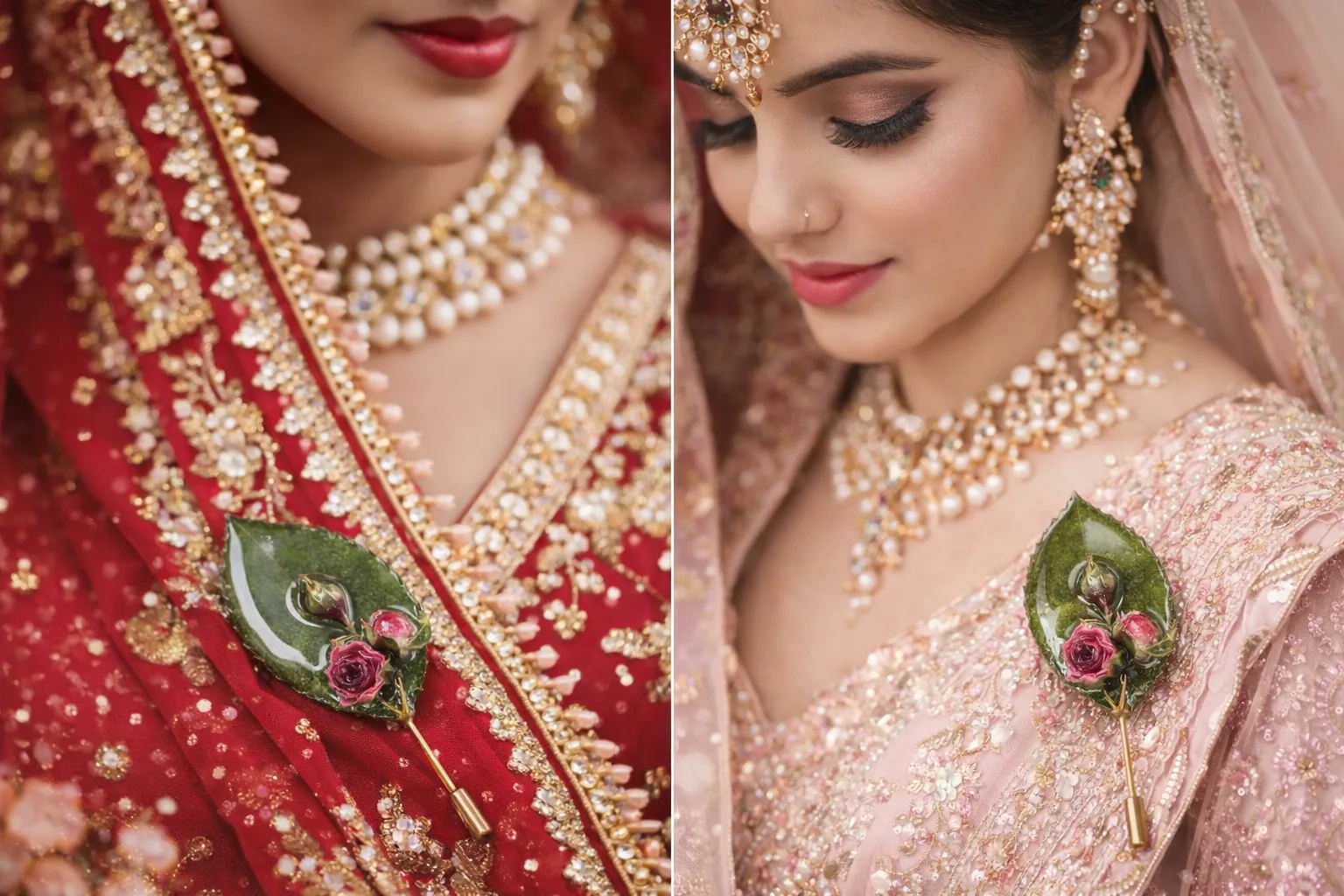 Designed in India ๐ฎ๐ณ under the Skill India spirit, this wedding brooch blends romance, nature, and luxury in one stunning accessory. Perfect for wedding outfits, sarees, lehengas, sherwanis, blazers, dupattas, and luxury gifting, this quality-assured luxury item reflects global demand for resin jewellery, customizable brooches, and celebrity-inspired accessories. Each piece is unique, handmade, and filled with emotionโmaking it ideal for Valentine love couples, bridal styling, and premium gifting ๐โจ.