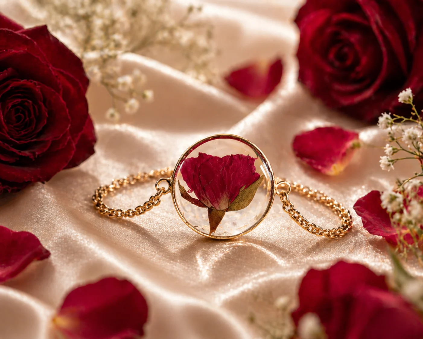 #RealRoseBracelet #ResinJewellery #HandmadeBracelet #GiftForHer #ValentineGift #LuxuryJewellery #PressedFlowerJewellery #IndianHandmade #BlingOn #CoupleGift #RomanticGift #BirthdayGift #AnniversaryGift #RoseJewellery #WomenAccessories #TrendingIndia #GenZFashion #PremiumGift #MadeInIndia #LuxuryItem