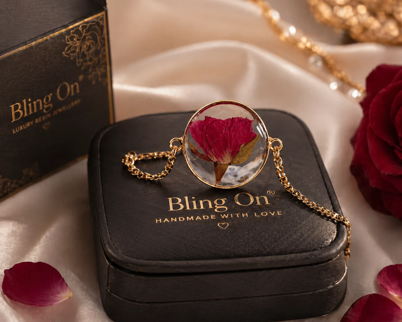 🌹 Real Rose Resin Bracelet for Women – Handmade Luxury Floral Bracelet | Romantic Gift for Wife, Girlfriend & Sister | Bling On®