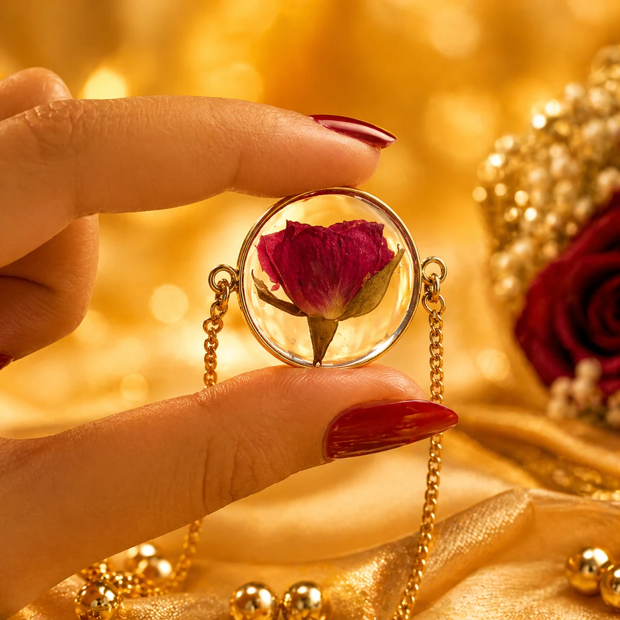 This is not mass-made jewellery. Each bracelet is handcrafted with a real preserved rose, premium resin curing process, finishing work, and elegant assembly. Every flower differs naturally, making each bracelet exclusive and collectible.