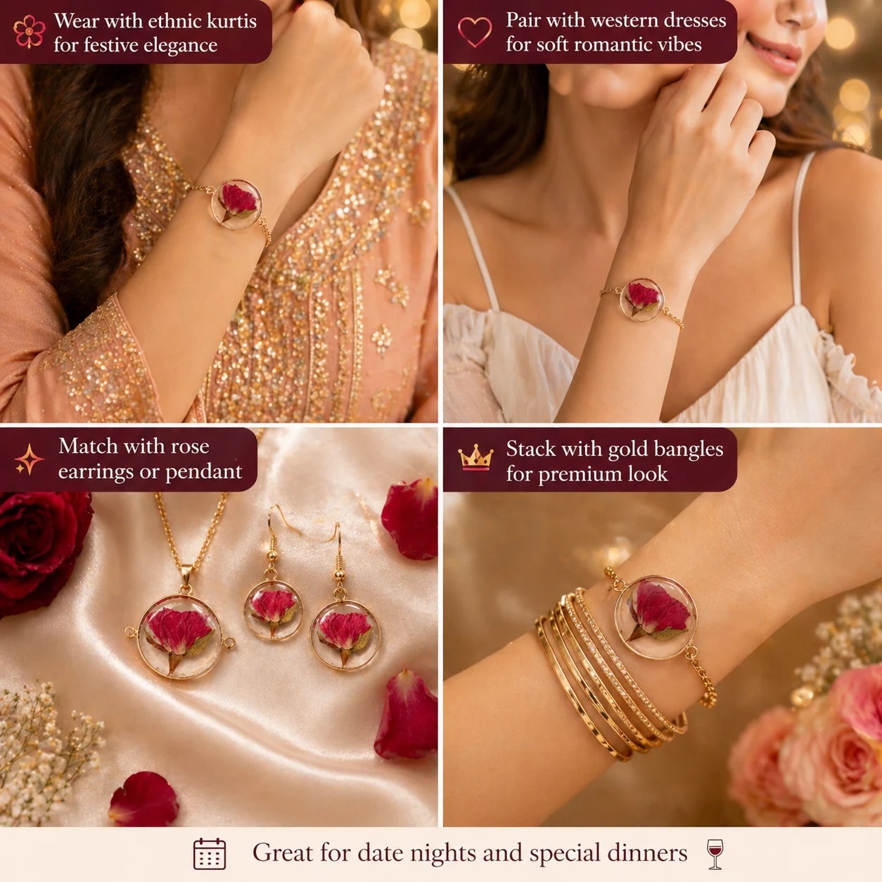 👗 How To Style 🌹 Real Rose Resin Bracelet for Women – Handmade Luxury Floral Bracelet | Romantic Gift for Wife, Girlfriend & Sister | Bling On®