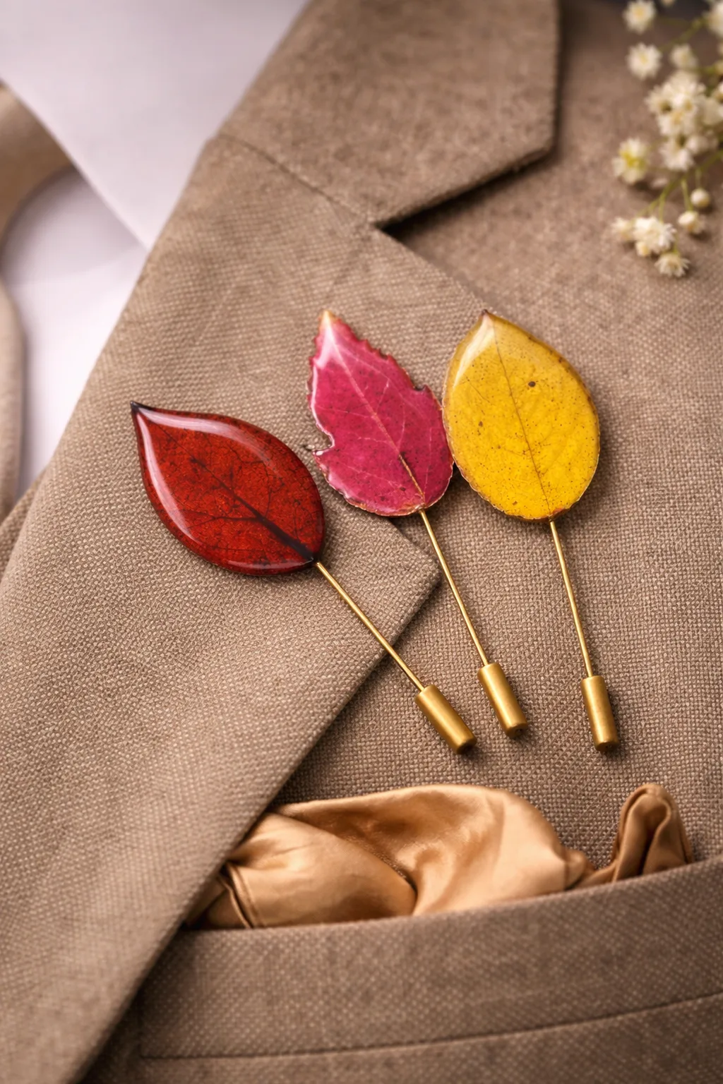 Luxury Wedding Lapel Pins | Custom Design Brooches | Viral in India ๐ฎ๐ณ ๐โจ Bling Onยฎ Handmade Real Botanical Leaf Resin Lapel Pins (Set of 3)