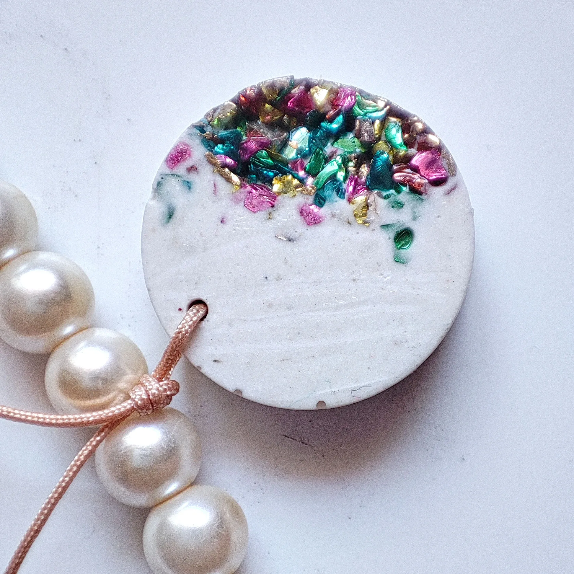 | Material | Premium Jesmonite, Pearl Beads, Cord Necklace |