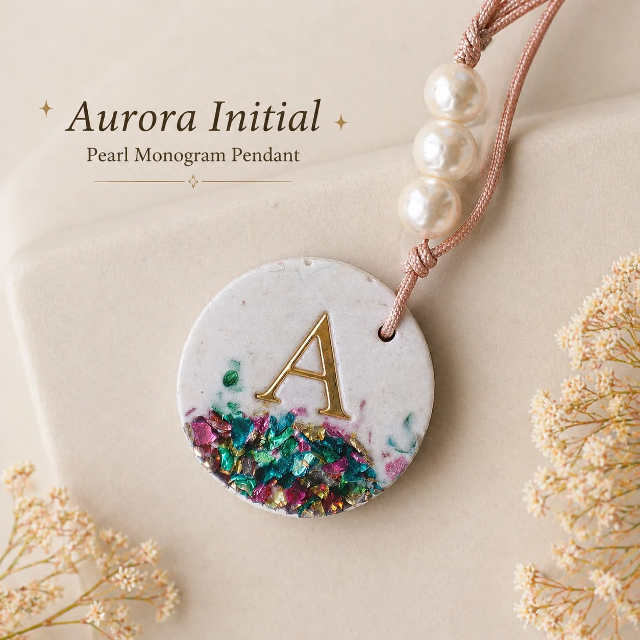 ๐ Product Details Aurora A Initial Jesmonite Pendant Necklace with Pearls for Women | Bling Onยฎ โจ๐