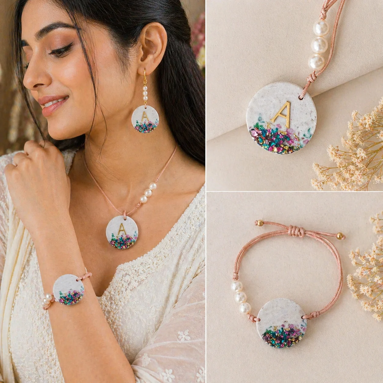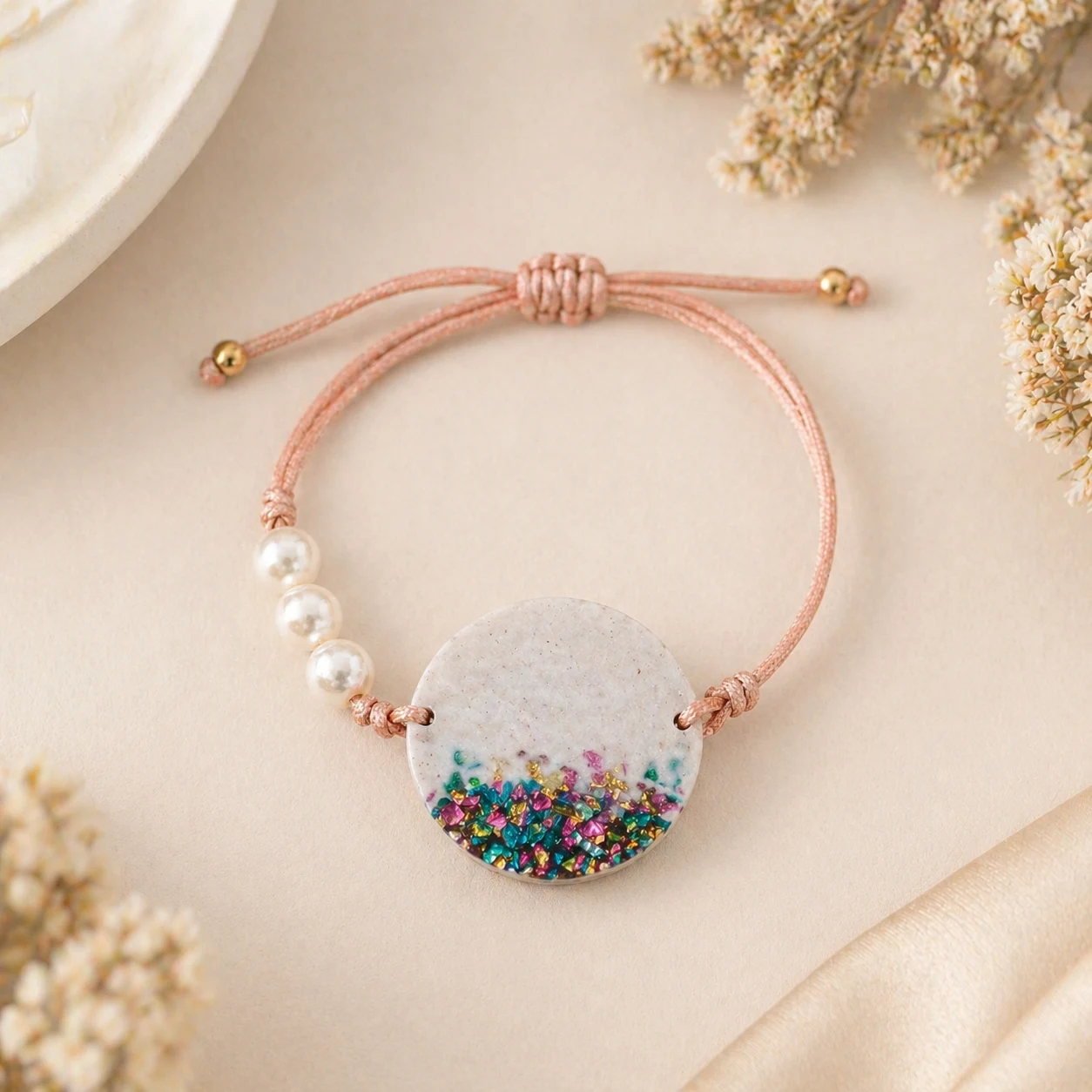Add graceful charm to your everyday style with the Aurora Jesmonite Pearl Bracelet for Women by Bling On®. This beautiful bracelet blends Luxury Handmade Jewellery, premium craftsmanship, and modern fashion into one elegant accessory. Carefully handcrafted in India using high-quality Jesmonite, pearl beads, and a soft adjustable cord, this bracelet feels lightweight, stylish, and comfortable all day long. The shimmering aurora accents create a unique design that catches light beautifully, making it perfect for Gen Z, Millennials, craft enthusiasts, and fashion lovers. Whether you admire Resin Jewelry, Polymer Clay Jewelry, handmade bracelets, or celebrity-inspired accessories, this bracelet fits every mood. Moreover, each bracelet is individually handmade, so every piece has its own exclusive pattern. Therefore, no two are exactly alike. It is ideal for gift buyers, birthdays, Valentine love couples, anniversaries, festive gifting, or daily luxury wear. Choose Bling On® for quality assured handmade jewellery that is viral and trending in India. ✨