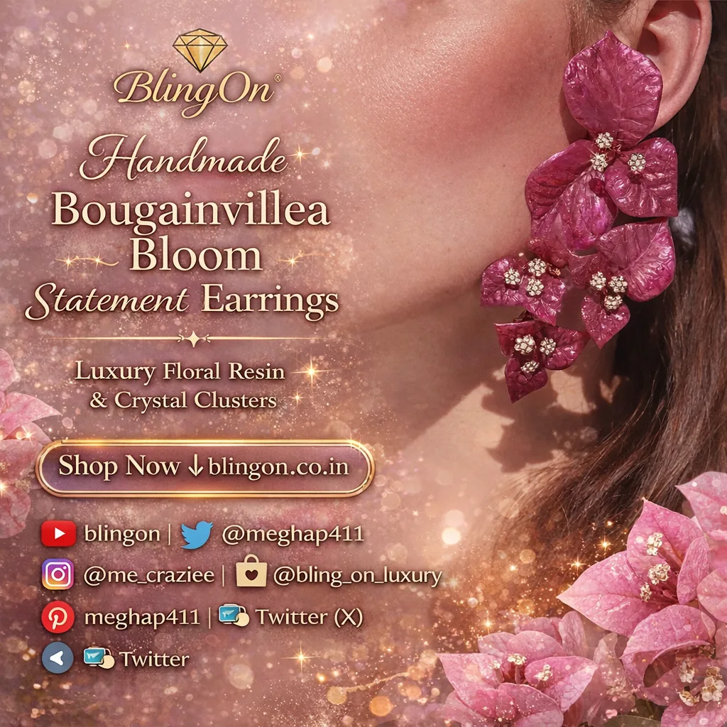 Turn every look into a celebration with Bling On® Handmade Bougainvillea Bloom Statement Earrings, a viral and trending luxury resin jewellery design in India. Loved by Gen Z jewellery lovers, millennials, Indian girls, craft enthusiasts, and gift buyers, these earrings are a bold expression of handmade jewelry, artistic beauty, and premium fashion.