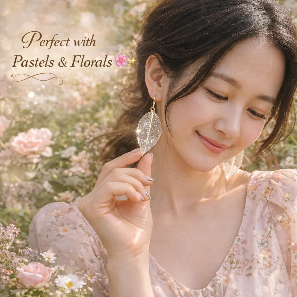 ๐ก Style Tip: Let sunlight hit the earrings to highlight the transparent leaf veins โจ