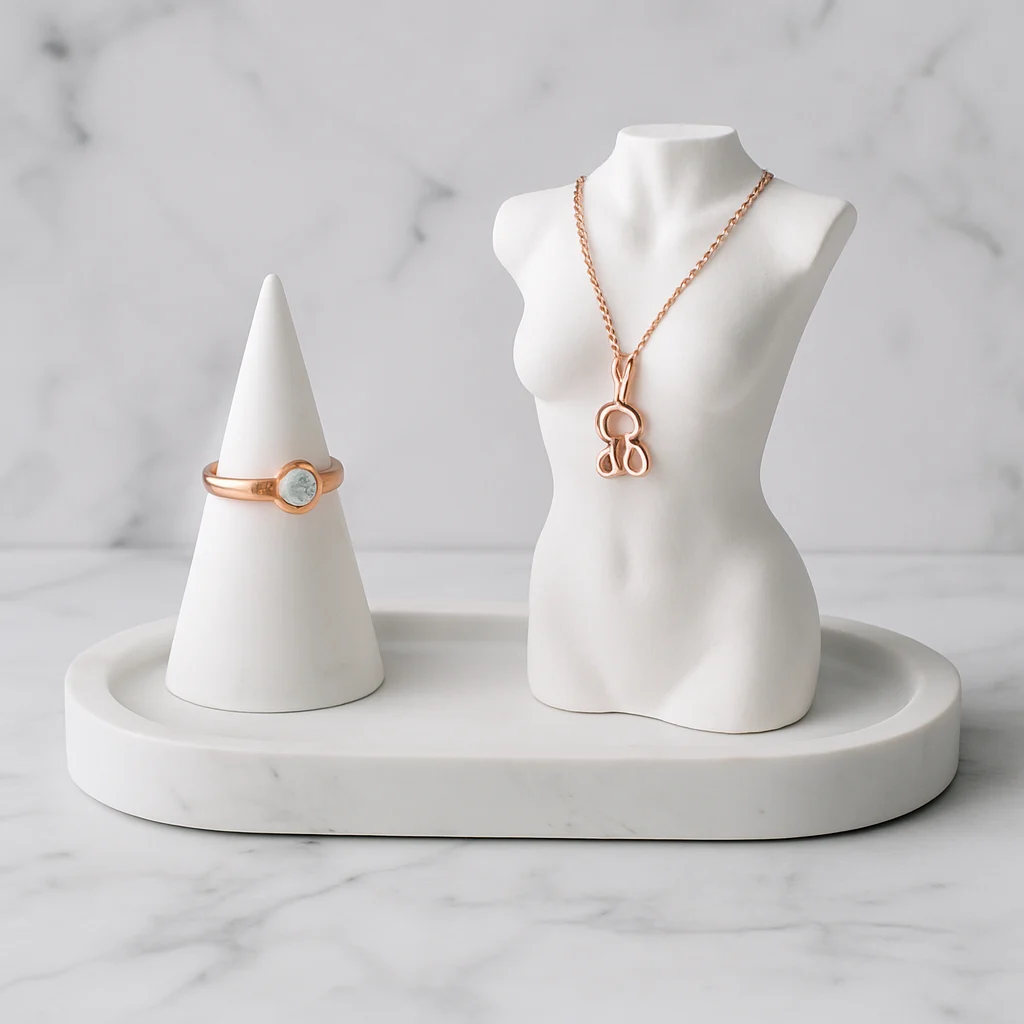 📦 What’s Included (Set of 03 – White Edition) 🤍🎁 Handmade Luxury Jewellery Set of 3 – Premium White Edition 🤍✨ | Marble Resin Tray | Mini Torso Pendant Stand | Minimal Ring Holder 💍✨