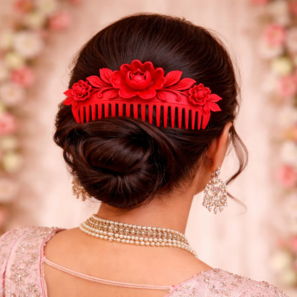 Handmade resin hair comb, Luxury bun hair pin, Bridal floral hair accessory, Custom color hair comb, Matte finish hair accessory, Designer hair comb India, Unique handmade jewelry, Premium resin jewelry India, Wedding bun accessories, Made in India hair accessory