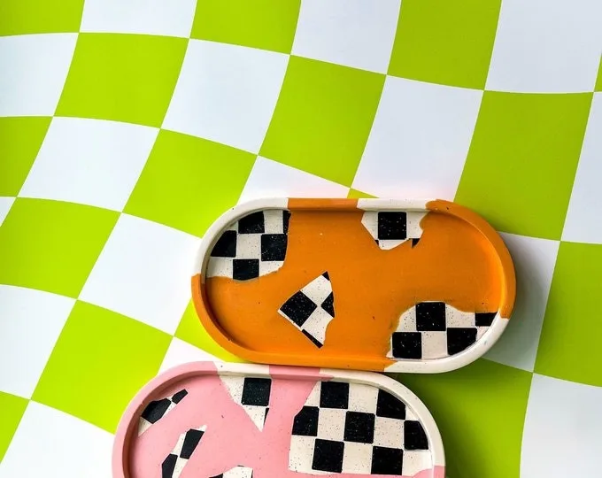 🛍️ Pricing & Product Details Jesmonite Handmade – Checkerboard Abstract Trays | Bling On