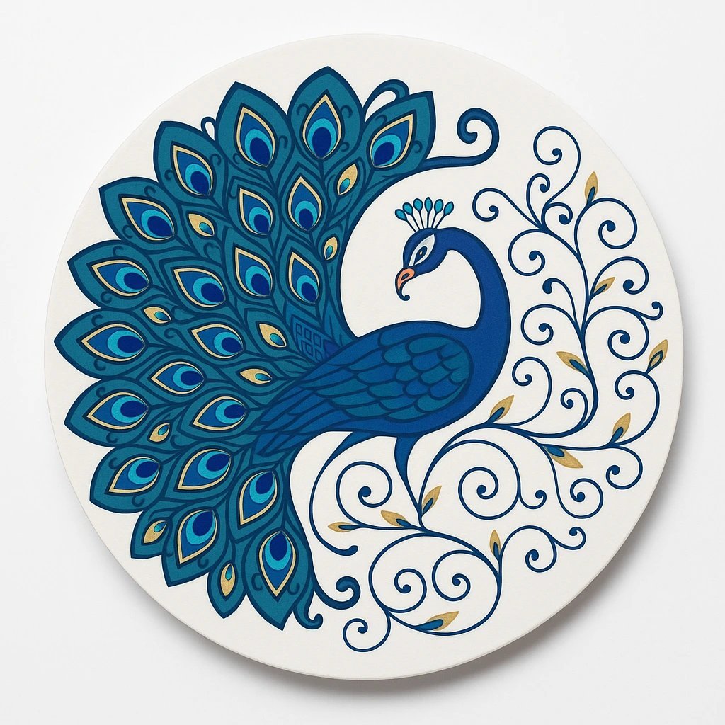 This 8-inch Peacock Pattern Printed Resin-Gloss Coaster – Luxury 8-Inch Indian Peacock Décor 🦚✨ 🦚✨ 🦚✨ brings together HD artwork, vibrant feathers, and a glossy resin-top coating to create a stylish home accessory that feels rich, colorful, and timeless. Designed for people who love peacock printed coasters, peacock pattern coasters, resin gloss coasters, or luxury table décor in India, it offers beauty and practicality in one piece. Since the artwork is not hand-painted but printed in high-resolution, the colors stay sharp, smooth, and long-lasting. Because it is heat-resistant and waterproof, it protects tables in your home, pooja room, kitchen, dining area, or office desk with ease. And as this coaster features an ethnic Indian pattern, it suits traditional as well as modern styling. Moreover, the anti-slip base adds extra comfort. So, whether you want a premium printed coaster, a festive coaster set, or a housewarming coaster—this piece creates an elegant, joyful feel instantly. 💙✨