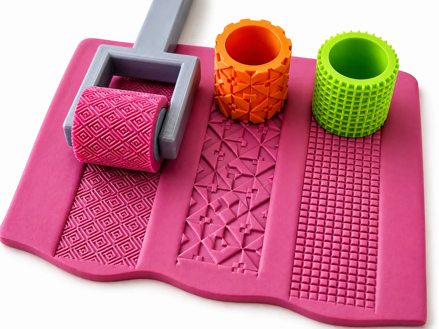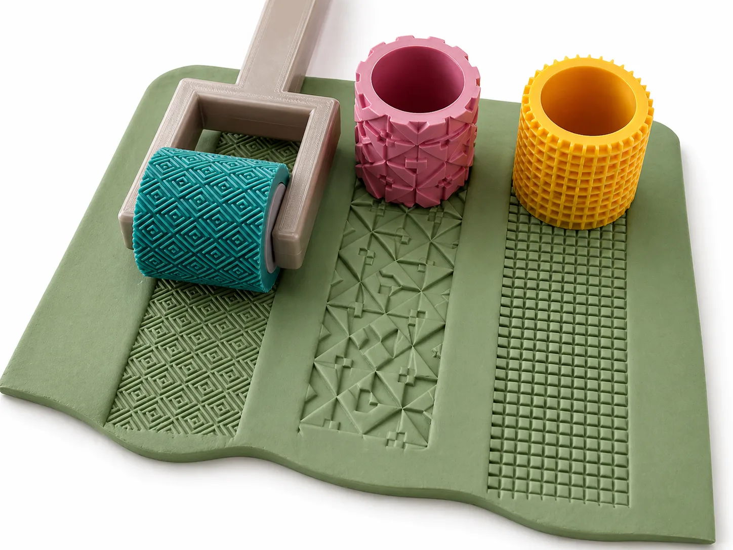 ๐ Why Choose This Roller Cutter Set? Polymer Clay Texture Roller 03 Design with handle โ Bright Color 3D Printed Clay Tools for Jewellery, Pottery & DIY Crafts