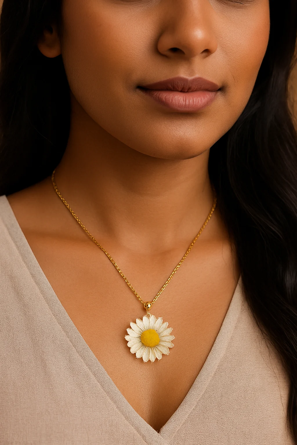 💛 Why This Daisy Pendant Is Special Real Flower Botanical Daisy Flower Pendant – Handmade Luxury Jewellery for Gen Z & Millennials | Trending in India | Bling On® Official Store