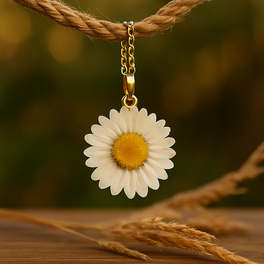 Handmade real daisy pendant crafted in premium resin with a golden chain. Lightweight, aesthetic and trending among Gen Z & Millennials. Perfect for gifting, eco-conscious buyers, and luxury jewellery lovers in India. SKU: BLG-DAISY-PENDANT-AMZN. Introductory Price ₹599 (Original ₹999). From Bling On® Official Store.