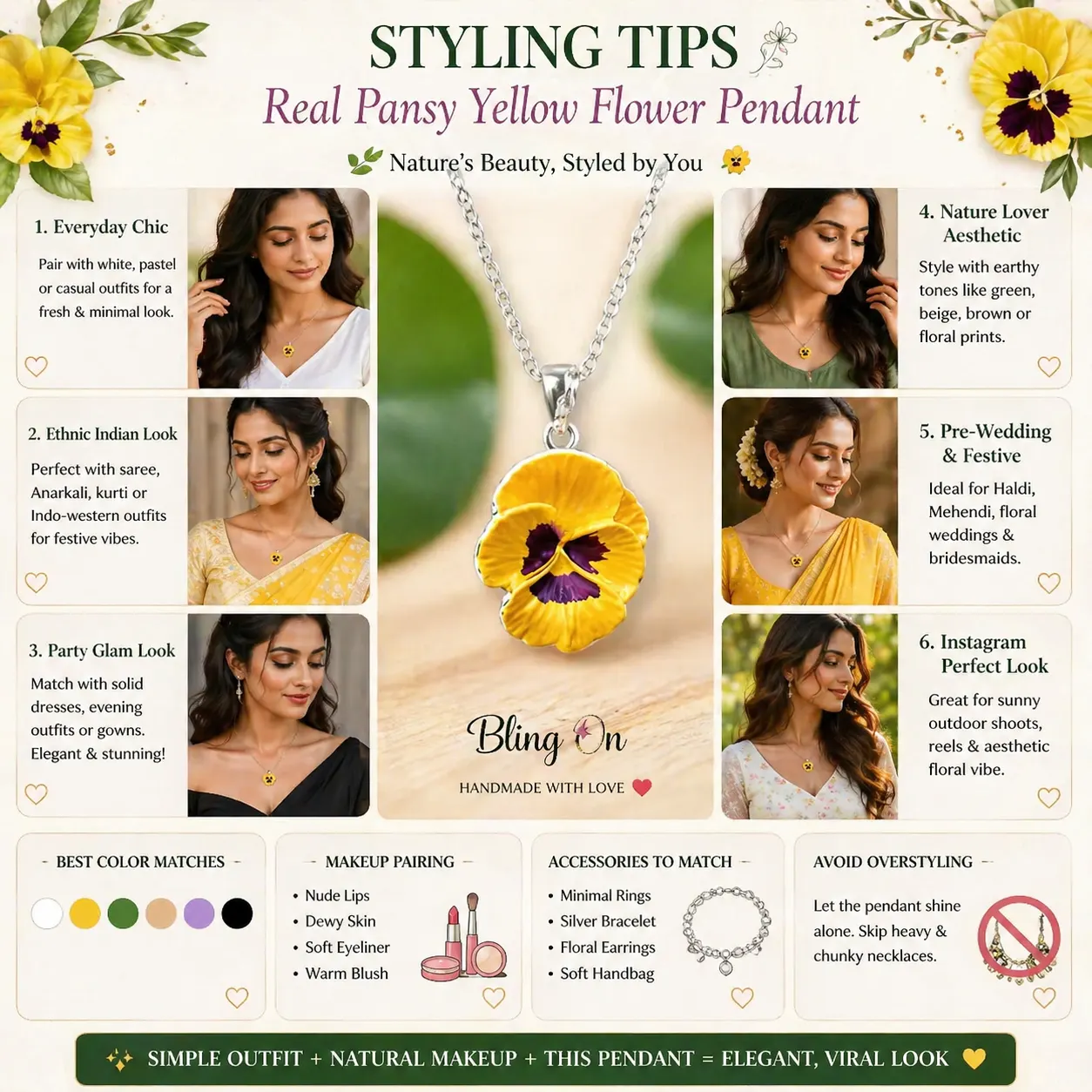🌼✨ Styling Tips for Real Original Pansy Yellow Flower Earrings 💛💜