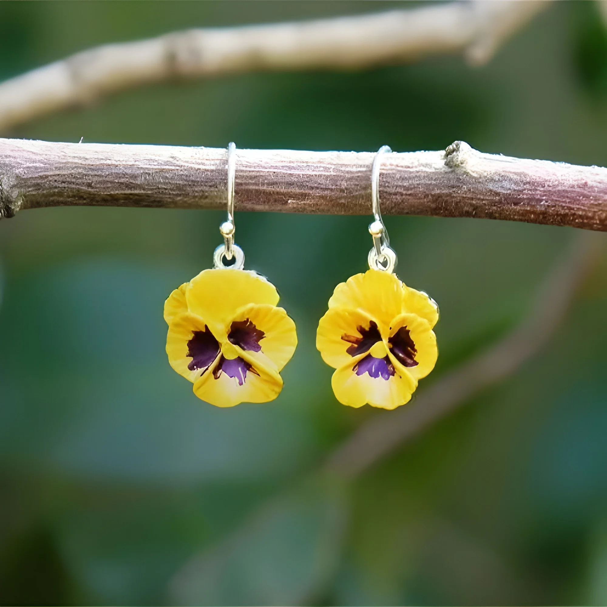 📏 Product Details Real Original Pansy Yellow Flower Earrings – Silver Tone Handmade Jewellery for Women